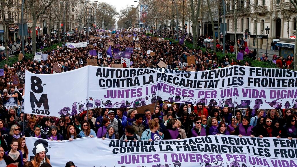 Unas 50.000 personas llenan las calles de Barcelona en el Día Internacional de la mujer 2020
