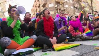 Grupos de jóvenes feministas se han concentrado con eslóganes y han realizado una sentada a las puertas de la sede de VOX. Así han esperado a la autocarava de Hazte Oír, a la que han recibido con abucheos. Hazte Oír ha recorrido también las sedes de PP y Ciudadanos para entregar las 24.000 firmas que han recogido para exigir la derogación de la Ley contra la Violencia de Género.