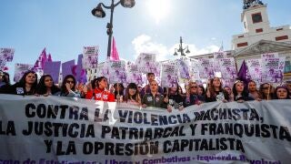 Madrid: Miles de personas, en su gran mayoría mujeres, se han concentrado en la Puerta del Sol de Madrid, convocadas por el sindicato de estudiantes, con motivo de la huelga feminista del 8 de marzo.
