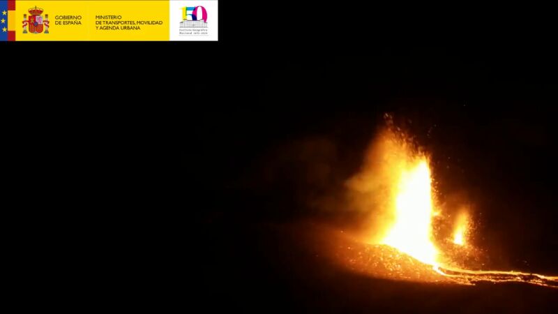 Este nuevo foco emisor se abrió de madrugada, sobre las 3:00 horas de la madrugada con emisión de coladas y piroclastos.