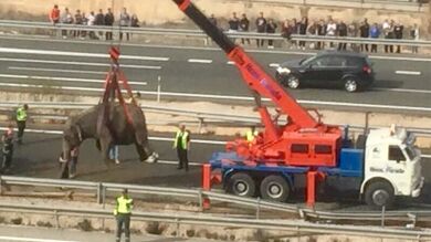 El accidente de un camión con elefantes provoca el corte de la A-30 porque los animales han invadido la vía