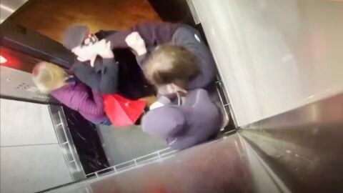 Los hechos fueron grabados por las cámaras de seguridad del interior de un ascensor, al que se subieron un total de tres personas. La tensión comenzó cuando el joven, la cuarta persona en cuestión, accedió también al elevador.