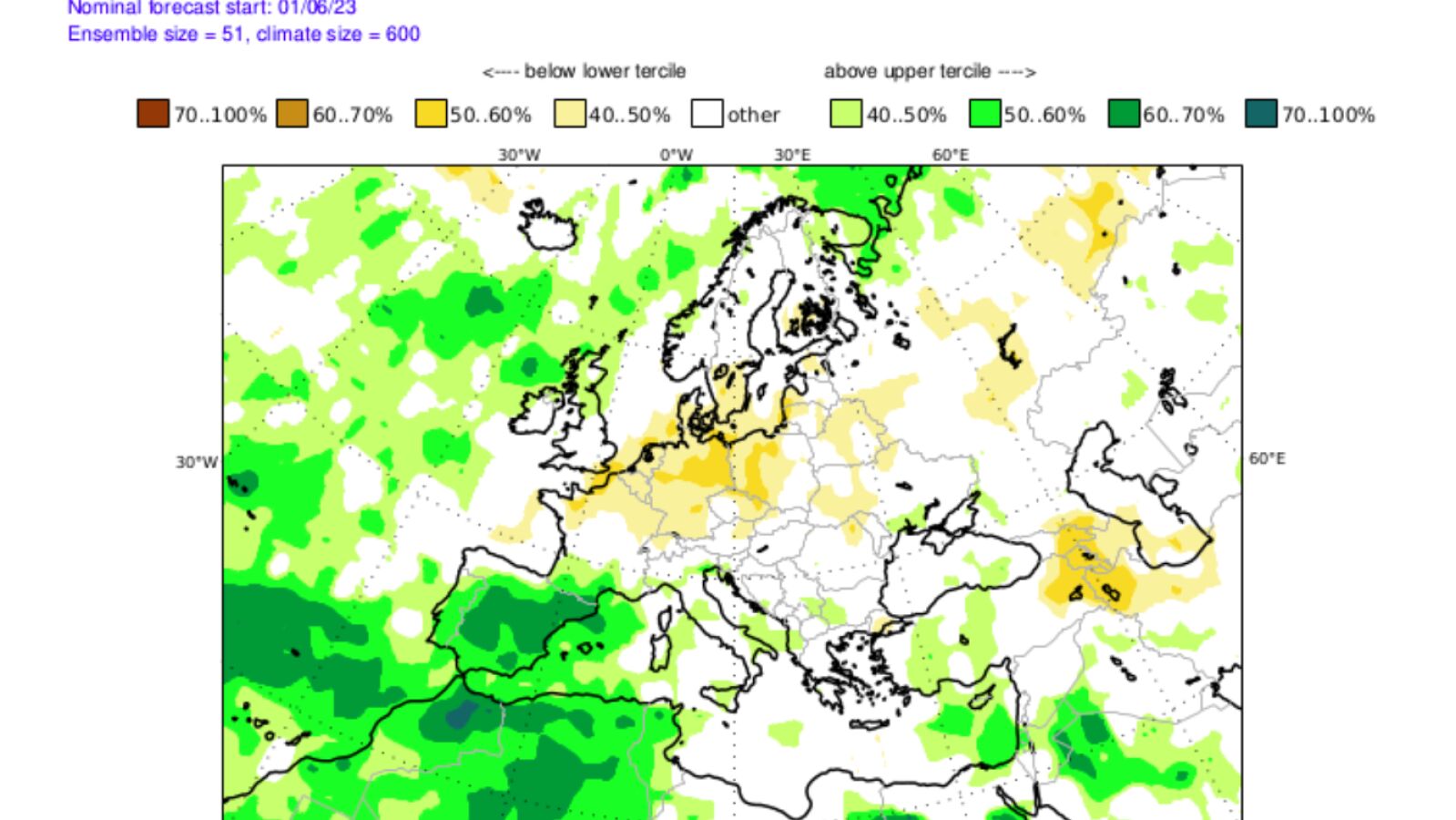 Según revela este experto, el modelo indica "altas probabilidades de que las precipitaciones estén en el tercil superior", es decir, en el 30% de los años más húmedos registrados.