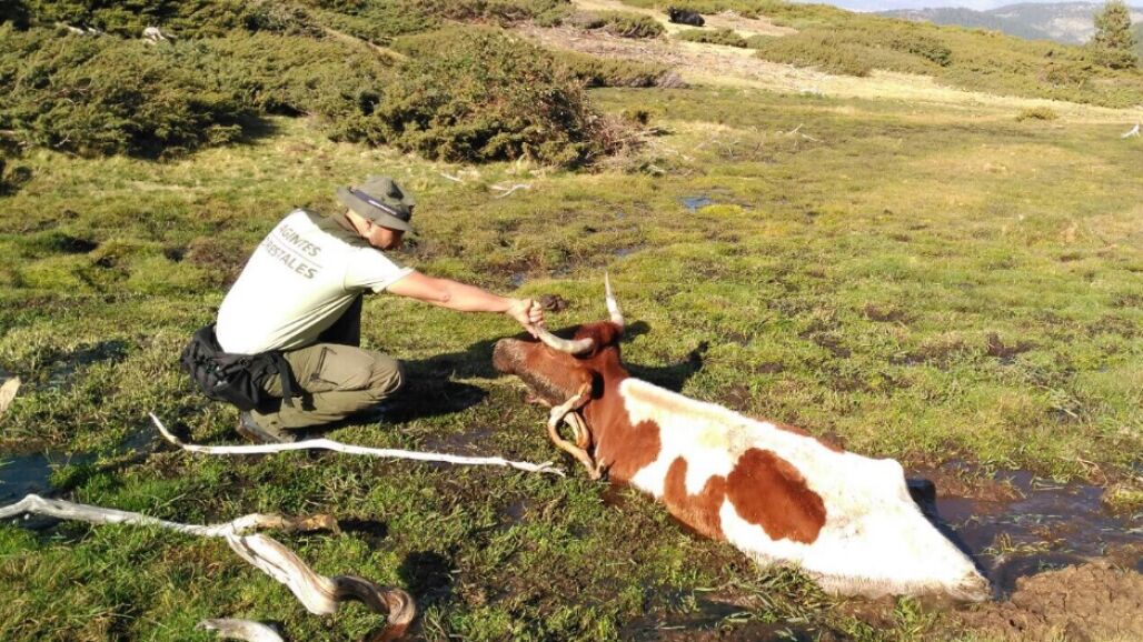 Agentes forestales de la Comunidad de Madrid han rescatado este pasado sábado a una vaca que se encontraba atrapada en una turbera en Rascafría, ha informado un portavoz de 112- Comunidad de Madrid.
