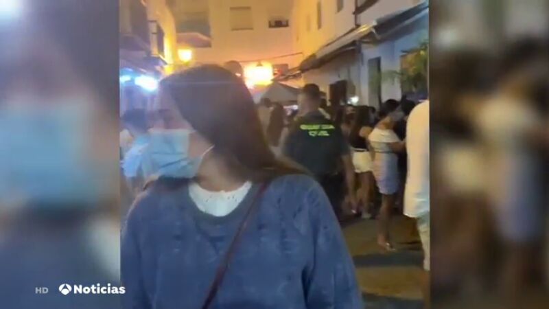 La secuencia se ha grabado en Tarifa, en Cádiz, pero se repite cada fin de semana en muchísimas localidades de la geografía española. De hecho, en este caso la mayoría de las personas que estaban en la zona de bares de la localidad gaditana llevaban mascarilla, pero en muchas ocasiones no ocurre así.
