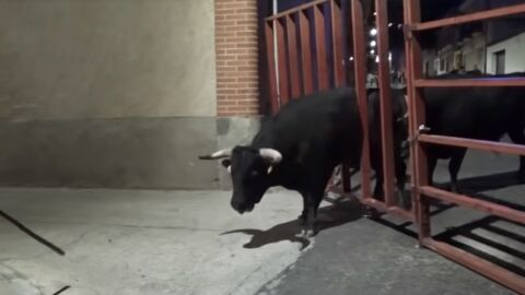 En Alaejos, Valladolid, se han vivido momentos de tensión después de que un novillo se quedara atrapado entre unos barrotes durante los encierros nocturnos de esta localidad.