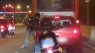 La persona que iba en el coche de detrás del agresor grabó y colgó un vídeo en Instagram, donde se evidencia como el conductor de una motocicleta baja de su vehículo para golpear, a través de la ventana bajada, al conductor del turismo rojo que le precede.