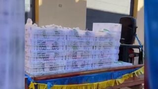 El Ayuntamiento de Aitona ha ido repartiendo casa por casa este vermut casero en kits, que han sido transportados por un tractor de uno de los residentes que llevaba un altavoz para animar a los vecinos con música.