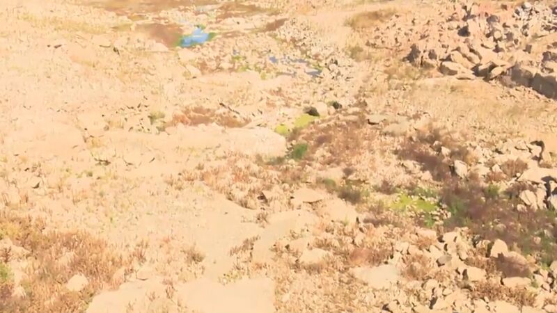 La situación en los embalses no es mucho mejor. La ciudad de Ávila se está quedando sin agua embalsada. Solo tienen reservas hasta el próximo 10 de noviembre. El embalse de Fuentesclaras reúne todo el agua que le queda a la ciudad y parece estar a punto de desaparecer. Cruzando una carretera, se sitúa el embalse de Las Cogotas, que está completamente desértico.