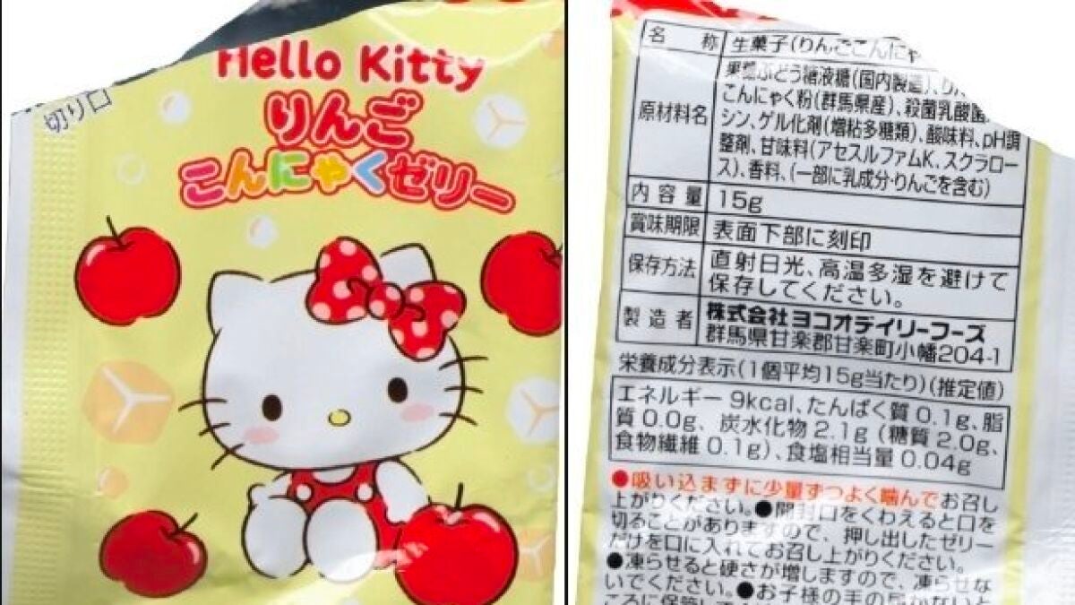 El aviso se ha producido tras una comunicación de los servicios sanitarios de Países Bajos, que detectaron el peligro en este dulce denominado 'Gelatina Hello Kitty de manzana y konjak', comercializado por la empresa japonesa Sanrio. El producto se vende en bolsas de plástico que contienen sobres individuales.