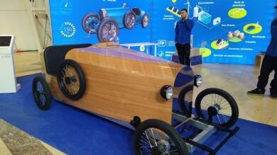 Los encargados de fabricarlo fueron los alumnos y alumnas del Ciclo Superior de Eficiencia Energética y Energía Solar Térmica y del Curso de Especialización en Fabricación Inteligente junto a cuatro profesores. “El coche está montado desde cero. Para ello, usamos un tipo de madera flexible que se llama ocume. Fue hecho en tiempo récord, prácticamente en dos meses”, explica Víctor.