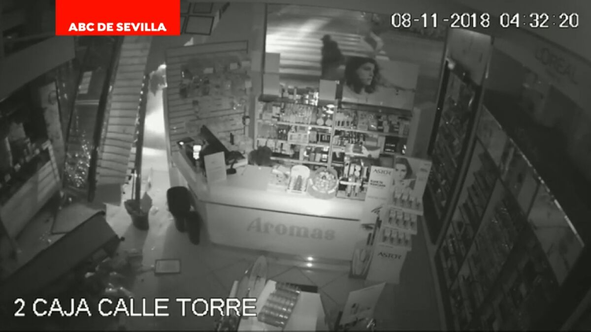 Unos aluniceros empotran el coche contra la puerta de una tienda de cosméticos en Sevilla. Después, tres de ellos se cuelan en el establecimiento para robar. Todo en menos de un minuto. En los últimos meses se han registrado 40 asaltos de este tipo en la capital andaluza.