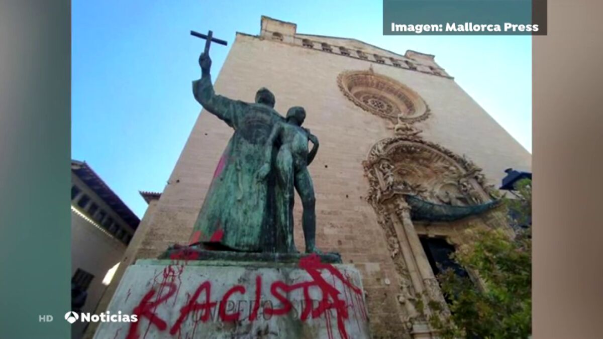La estatua del misionero Fray Junípero Serra, situada en Palma de Mallorca, ha amanecido con pintadas y con la palabra "racista". Esto se ha producido después de que la concejal de Podemos en el Ayuntamiento, Sonia Vivas, animara en las redes a que fuera derribada "pacíficamente" .