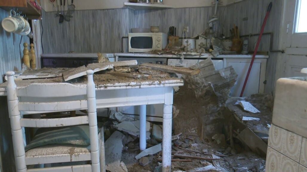 La familia acusa a la inmobiliaria de aprovechar que la nonagenaria ha estado fuera de su hogar durante las vacaciones de verano para destrozar el piso: grietas, goteras, desperfectos y derrumbes.