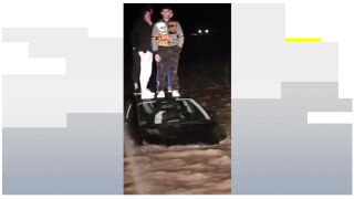 Las fuertes lluvias que han caído en Huétor Tájar han dejado rescates de película como el de 4 jóvenes a los que la riada sorprendió en su coche. Tuvieron que subirse al capó del vehículo y esperar a ser rescatados.