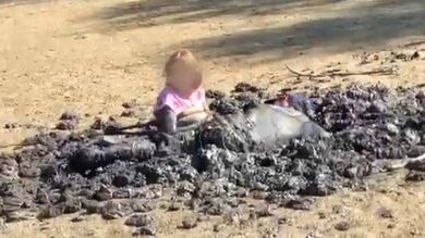 Su hijo cayó en el barro y ella fue a socorrerle