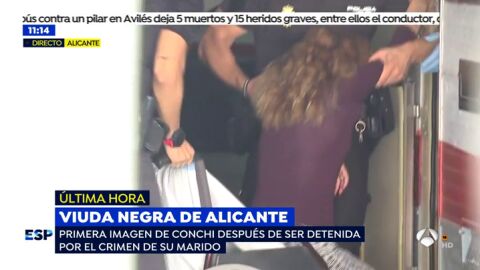 Conchi, la conocida como 'viuda negra' de Alicante, ha salido de prisión para estar presente en el registro de la caravana en la que vivió. Los investigadores han comenzado el análisis del vehículo para recabar pruebas.