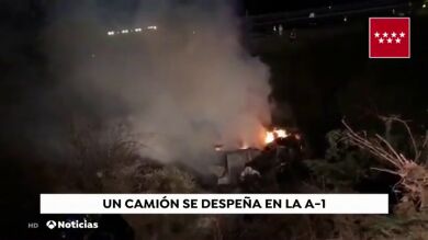 Un camión de gran tonelaje se ha incendiado tras salirse de la vía y caerse por un precipicio de 20 metros de altura este jueves en la A1 a su paso por Somosierra, según han informado fuentes de Emergencias 112 Comunidad de Madrid. La mercancía que transportaba el camión, cargado de toneladas de galletas, ha ardido y el conductor ha sido trasladado al Hospital Infanta Sofía para hacer un reconocimiento, con pronóstico leve, tras haber salido por su propio pie del camión.