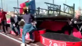 Aparatoso accidente en Dos Hermanas: una pantalla gigante cae sobre tres niños y el alcalde