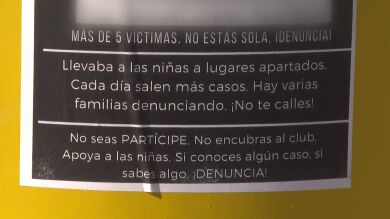 En los carteles se puede ver la cara del acusado, con su nombre y apellidos y se puede leer "entrenador y acosador sexual". "Llevaba a las niñas a lugares apartados Cada día salen más casos. Hay varias familias denunciando. ¡No te calles!", rezan los carteles.