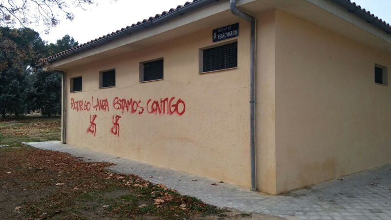 La caseta municipal del parque Plata y Castañar, en el distrito de Villaverde, ha amanecido este viernes con pintadas en color rojo a favor de Rodrigo Lanza, acusado del asesinato de Víctor Laínez en Zaragoza, y varias esvásticas tachadas.