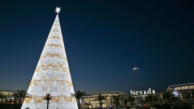 Al árbol no le falta nada. Este Goliat de la Navidad, convenientemente vestido con la friolera de 82.000 luces, nos recuerda que esta festividad ha llegado más de un mes antes. Por ahora se erige campeón -a no ser que otro árbol lo destrone- en el centro comercial Nevada, en Armilla. La asociación nieve y Navidad le va que ni pintado. Su promotor es Tomás Olivo, el sexto hombre más rico del país, y propietario del centro comercial donde se halla. 250.000 euros le ha costado. Son muchas horas de soplete. Y allí ha echado raíces, porque no es la primera vez que se expone. En 2019 ya llegaba a la cumbre, para impresión y orgullo de los granadinos.