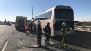 El conductor se ha percatado de que salía humo de la parte trasera del autobús, por lo que ha parado el vehículo en la vía de servicio de la A-6 dirección Madrid. Después ha comprobado que se trataba de un incendio en el motor.