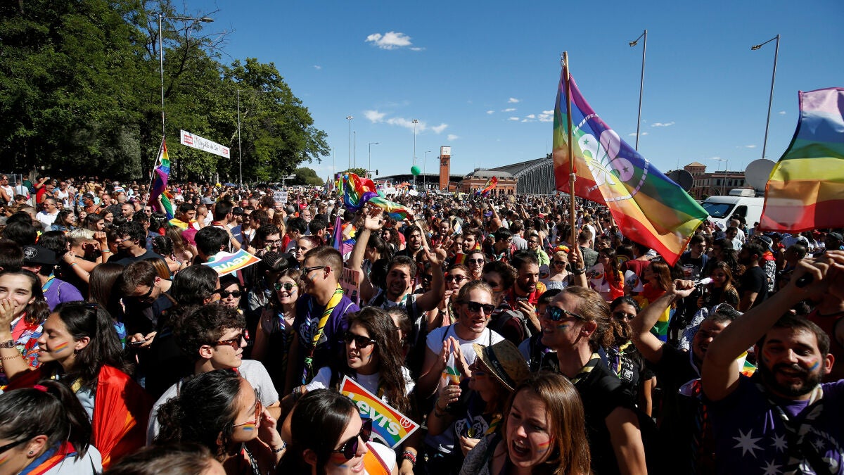 Miles de personas se cubrieron con la bandera arcoíris en Madrid para celebran la fiesta del Orgullo Gay