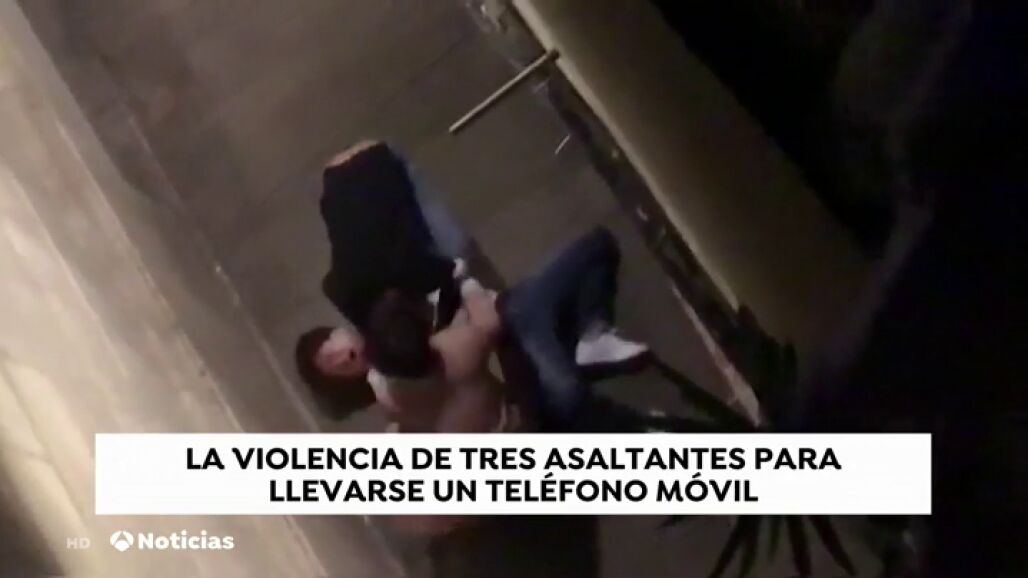 Los tres ladrones no dudan en golpearle y tirarle del pelo para robarle el teléfono móvil.