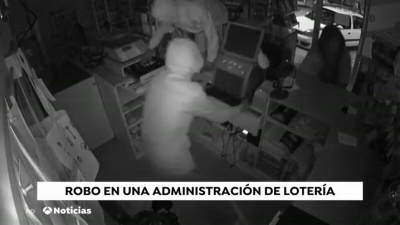 Las cámaras de seguridad de una administración de lotería graban el asalto de tres encapuchados