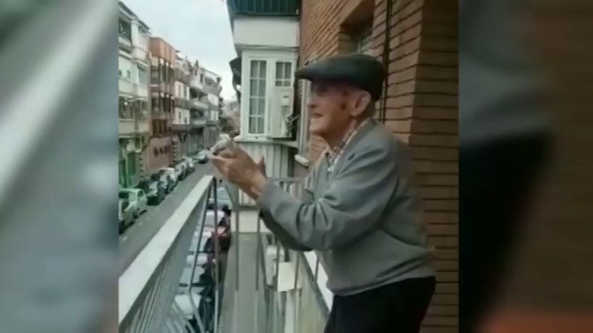 Así anima un anciano de 100 años a aplaudir a los sanitarios que luchan contra el coronavirus