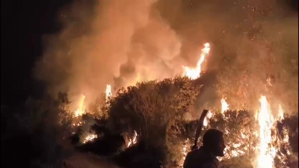 Los vecinos del municipio de Guardo están confinados y pasan la noche en vela. Voluntarios trabajan subidos a los tractores moliendo los rastrojos para evitar que el fuego llegue a las casas. "El fuego está arriba, no sé lo que tardará en pasarse, depende del aire", son las palabras de un hombres que conduce uno de los tractores.
