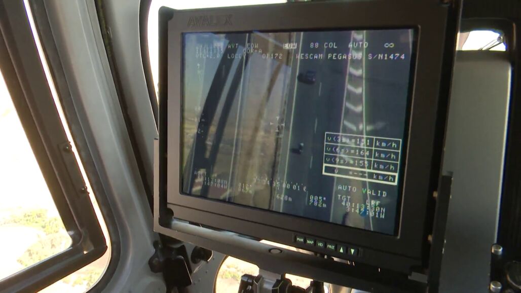 El equipo de Antena 3 Noticias ha podido acceder a uno de estos helicópteros y volar dentro de él mientras ejerce su labor de control en las carreteras. A 200 metros de alturas, el helicóptero de la DGT es el más temido por los conductores que ya están de viaje en esta segunda operación salida del verano. El radar de Pegasus es capaz de captar infracciones a más de un kilómetro de distancia en pocos segundos. Captura la velocidad exacta a la que circulan los coches.