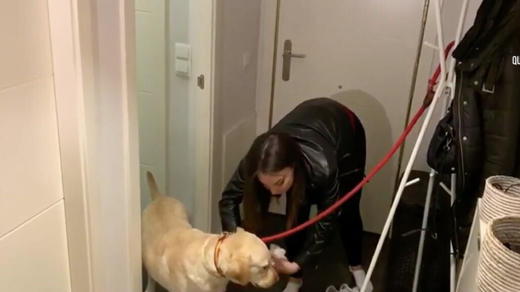 Al llegar a casa después de salir a pasear con el perro durante el confinamiento por el coronavirus hay que intentar tocar las menos cosas posibles. La recomendación de los sanitarios es quitarse los zapatos y dejarlos en la puerta, y desinfectar las patas del animal con una toallita, ya que viene de la calle.