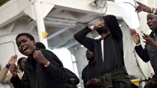 - El 'Aquarius' pone rumbo a Valencia acompañado de dos naves italianas que ayudan a albergar a los migrantes.