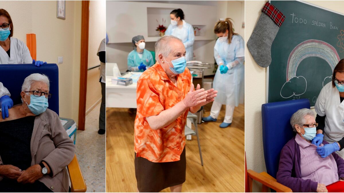 La vacunación frente al coronavirus se ha iniciado este domingo con Araceli, una anciana de 96 años, y Mónica, auxiliar de enfermería de la residencia Los Olmos de Guadalajara. A partir de ese momento histórico para España, las primeras vacunas han comenzado a llegar y suministrarse en el resto de las comunidades autónomas.