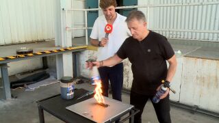 Durante una demostración en la que se han utilizado ramas de pino, que han sido previamente empapadas con el producto, han resistido al fuego directo de un soplete y han quedado intactas sin haber sufrido daño alguno. El mismo resultado se ha obtenido con otros materiales como cartón, madera y papel, que también han permanecido intactos pese a estar en contacto directo con las llamas. Se trata de un líquido, que al aplicarse sobre cualquier producto es capaz de protegerlo e impedir que prenda incluso con el fuego de un soplete.