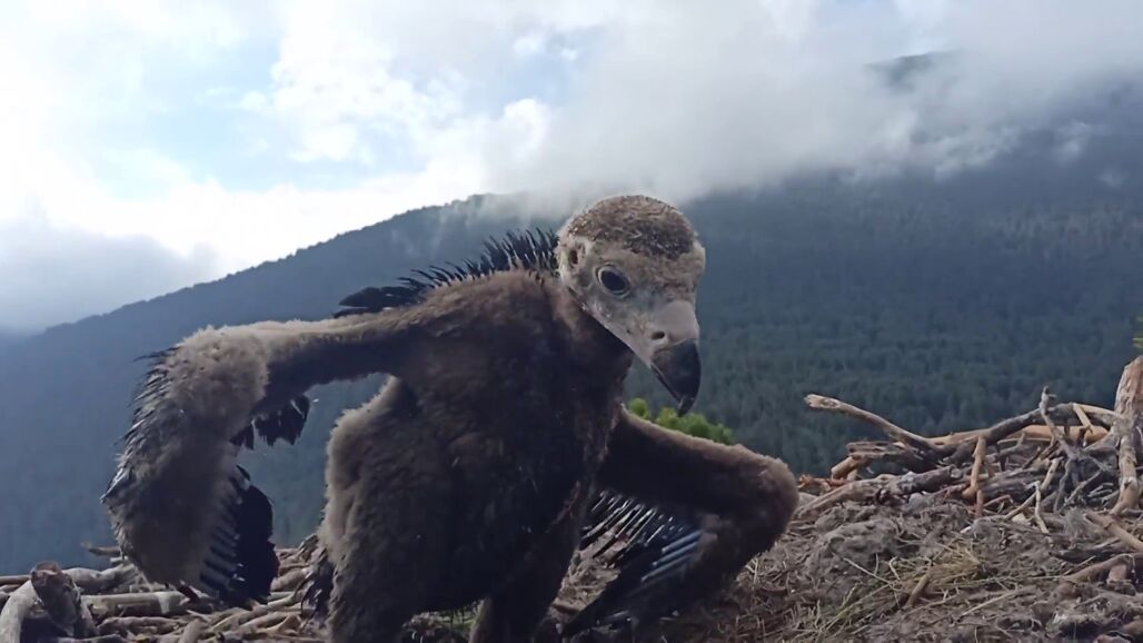 El buitre negro, el ave de mayor envergadura de Europa, es una especie protegida. La mejor forma de controlar la población es en verano, cuando las crías están aún en el nido.