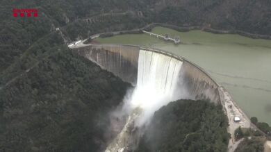 El río Ter a su paso por las comarcas de Ripollés, Osona y Selva ha dejado campos inundados y vemos cómo la presa de Colomés está a niveles de capacidad máxima. Esta presa se dedica a irrigar campos frutales que están completamente anegados como podemos observar en estas espectaculares imágenes desde el aire.