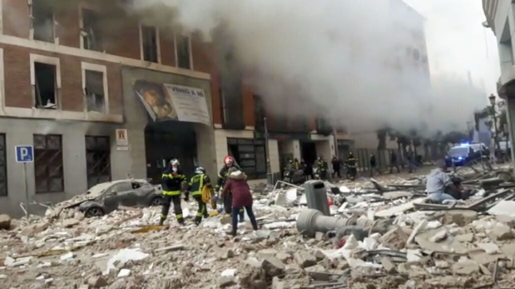 La fuerte explosión en un edificio en la calle Puerta de Toledo en Madrid ha dejado tres fallecidos, según informa la delegación del Gobierno. También hay varios heridos, uno de ellos ha tenido que ser trasladado al hospital La Paz. Así se encuentra la zona después de la explosión.