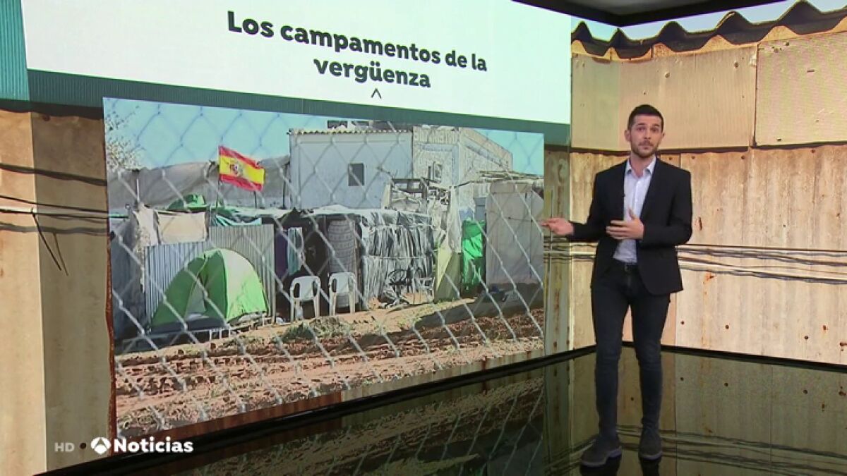 Antena 3 Noticias ha visitado uno de los campamentos chabolistas más grandes de Lepe y ha hablado con alguno de los trabajadores que viven allí. Nos cuentan que viven como "animales", entre cartones y basura.