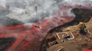 Esta colada se creó cuando el pasado fin de semana parte del cono del volcán se derrumbó y es la misma que hace dos días cubrió por completo un polígono industria causando un incendio en una cementera que terminó con 3.000 personas confinadas en sus casas.