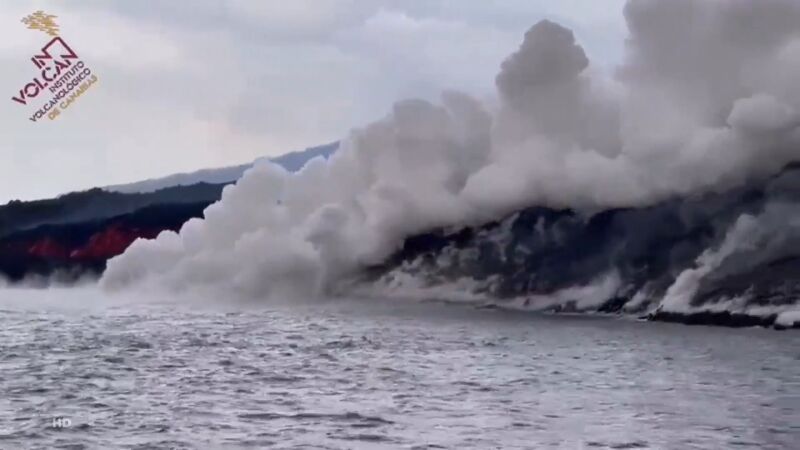 Así suena la lava del volcán de La Palma en contacto con el mar
