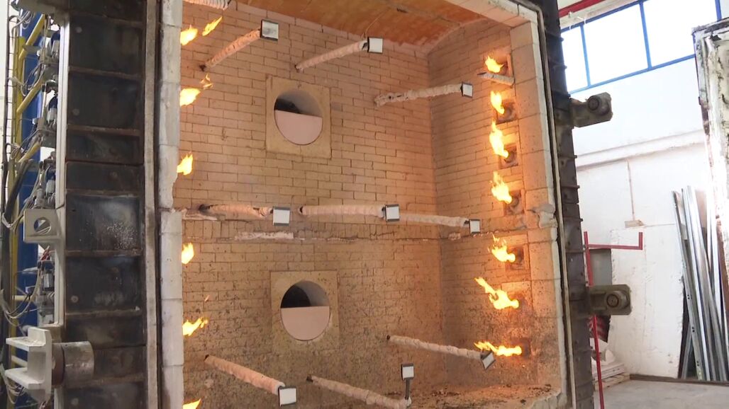 En este laboratorio se pone a prueba la resistencia de los materiales de construcción ante un incendio. Con un horno simulan las condiciones reales de fuego, llegando a alcanzar temperaturas de hasta 1.200 grados. En él se pone a prueba todo tipo de materiales para paredes, ventanas y puertas.