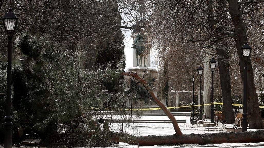 La decisión se tomó debido a la velocidad del viento y por ser árboles de diana de grandes dimensiones y teóricamente peligrosos. Este lunes, el Retiro, la Quinta de los Molinos, Torre Arias, El Capricho y el Paseo de la Rosaleda permanecen cerrados.