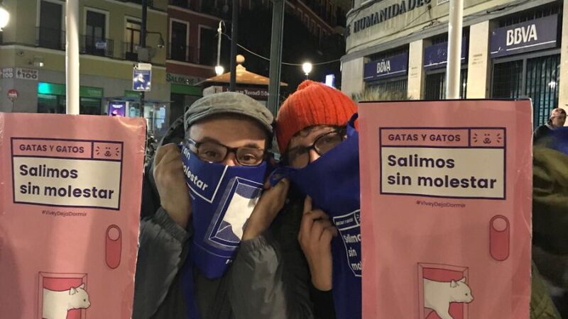 Esta iniciativa está dirigida a los locales y sus usuarios con el objetivo de conciliar el derecho al descanso de los residentes en las zonas afectadas con el ejercicio de la actividad empresarial y el disfrute del tiempo de ocio de madrileños. Los protagonistas de los carteles son los gatos, al ser animales "sigilosos y silenciosos" y al ser el apelativo con el que se designa a los madrileños. 'Gracias por no molestar', 'Vive y deja dormir' son los lemas que acompañan a las ilustraciones de estos mininos.