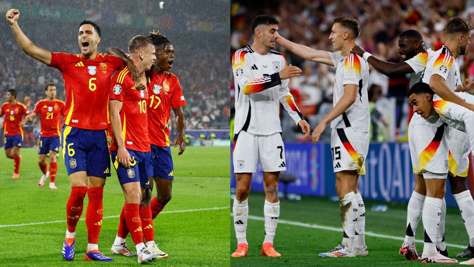 Este partido supone el sexto encuentro entre los dos colosos del futbol europeo, que tienen un balance de un empate y dos victorias para cada selección. La selección española viene con la ilusión de ver a las jóvenes sensaciones del torneo, Lamine Yamal y Nico Williams. Por su parte, que el gran atractivo de Alemania reside en que, en caso de derrota, sería el último partido de Toni Kroos.