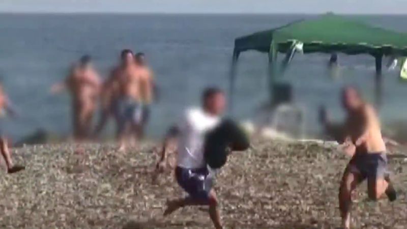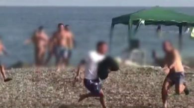 Minutos más tarde, ante la sorpresa de los bañistas, que estaban viendo y grabando con sus móviles la persecución, la embarcación encalló en la arena de la playa e incluso llegó a golpear en la pierna a uno de los bañistas. Posiblemente eso provocó la ira de quienes estaban en la playa, que se lanzaron a por los narcos protagonizando la curiosa escena. "¡A por ellos! ¡A por ellos!", gritaban los bañistas.