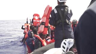 En las imágenes se puede ver cómo el Sea Watch rescata a 51 inmigrantes cuando trataban de alcanzar suelo europeo. Allí reciben comida y mantas pero la situación es cada vez más precaria y falta espacio. "Los rescatados necesitan un lugar seguro ahora y no pueden esperar hasta que las autoridades europeas negocien la asignación sentadas cómodamente detrás de sus escritorios", reivindicó. Se quejan de la lentitud de Europa.