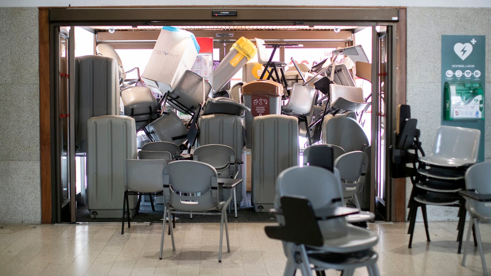 Por eso, han hecho barricadas en los accesos a la universidad. A las 7.30h de la mañana mesas y sillas colocadas en todas las puertas principales impedían la entrada de los estudiantes. Los únicos que han podido acceder son los profesores. La universidad ha decidido suspender las clases y algunos estudiantes se han quejado porque es época de exámenes y querían ir a la biblioteca a estudiar.